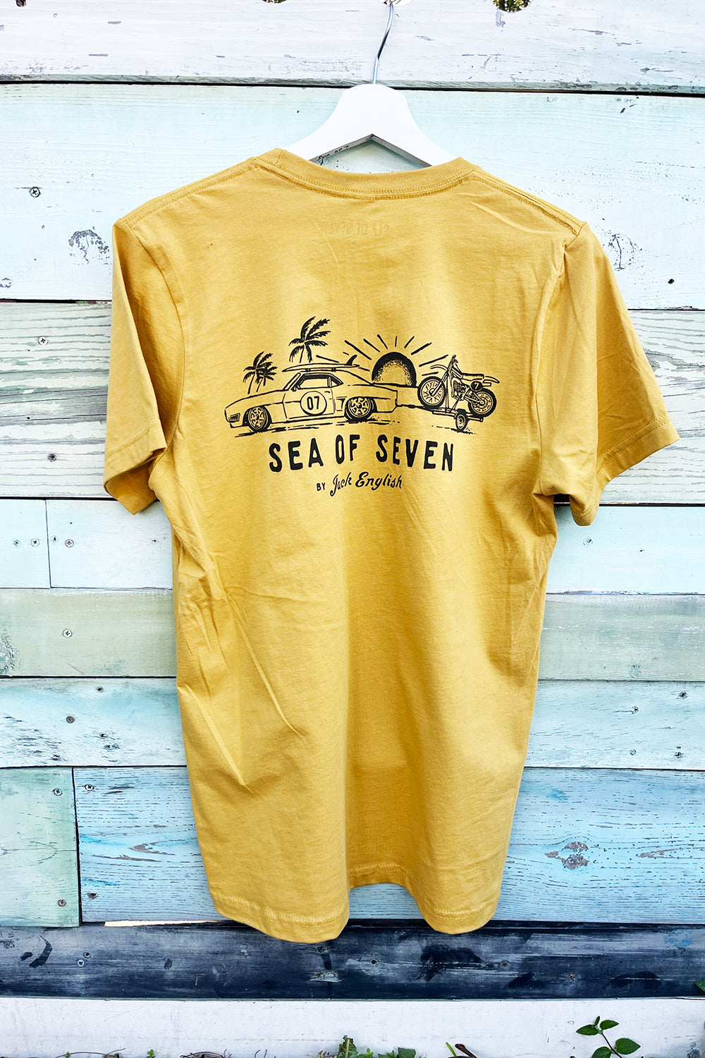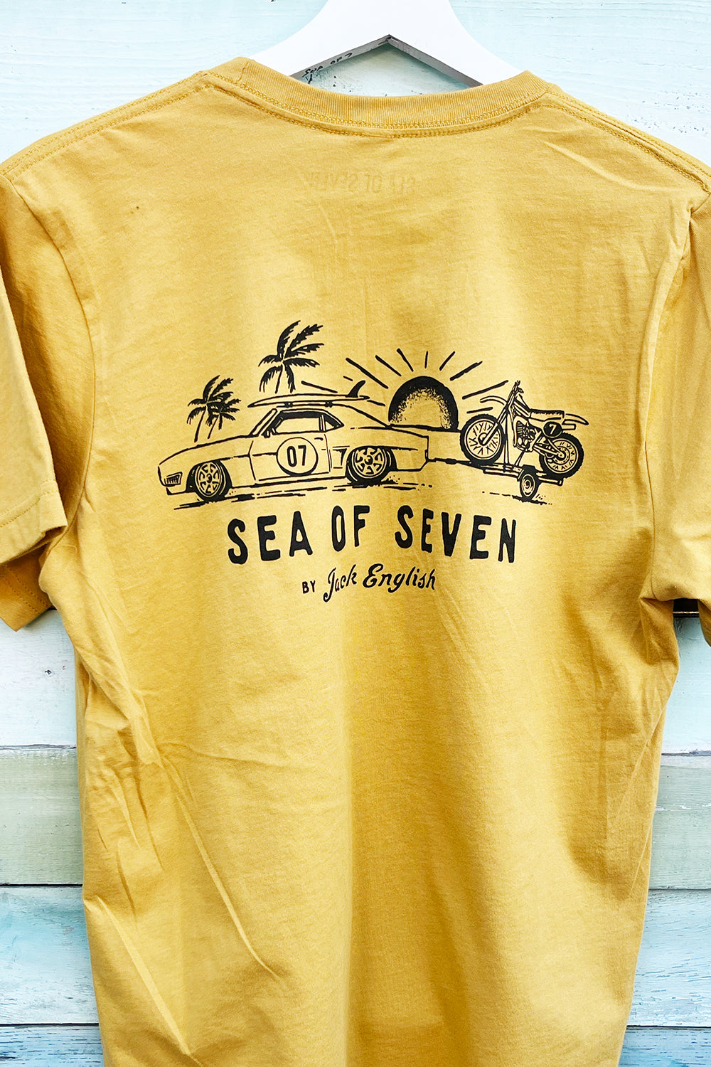 Crafted from ultra-soft cotton, this premium crew neck tee delivers unmatched comfort and durability. The front showcases the SEA OF SEVEN graphic, while the back features original artwork inspired by Jack English.