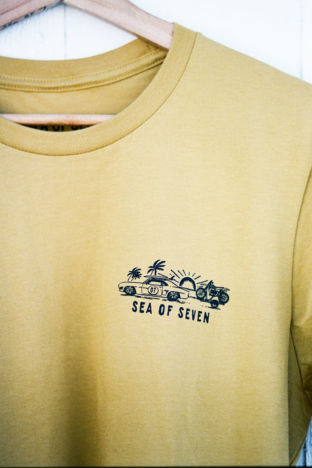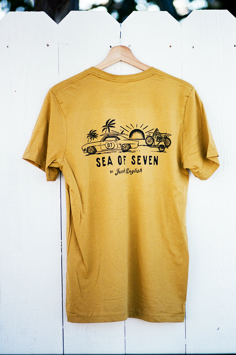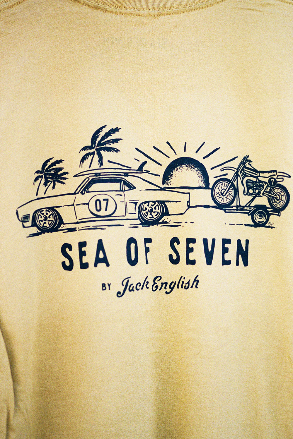 Crafted from ultra-soft cotton, this premium crew neck tee delivers unmatched comfort and durability. The front showcases the SEA OF SEVEN graphic, while the back features original artwork inspired by Jack English.